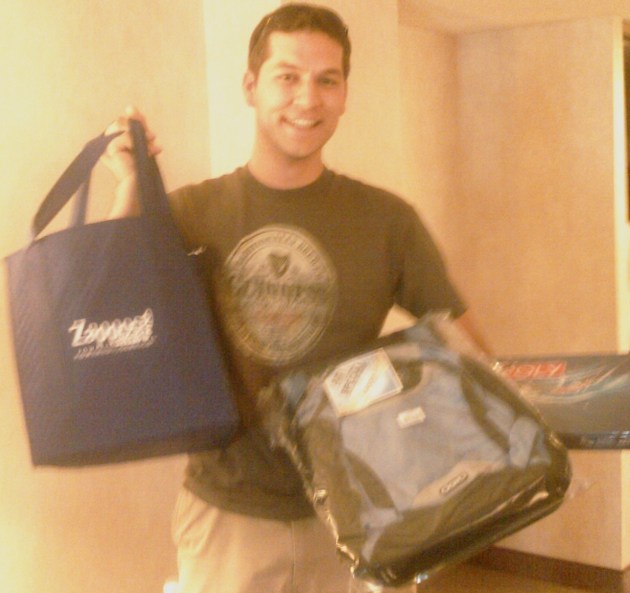 The folks at Zappos wanted to make absolutely sure I left the building with a positive impression. In addition to all the free information, popcorn, and smiles I received, they gave me SWAG! I could barely carry it all (a backpack, Zappos Monopoly, culture books, and more). They let me and the other visitors choose a hard back book from their 2 large book cases in the lobby. I took home The 4 Hour Work Week by Timothy Ferriss. Given that I was on a mid-week Vegas trip I had traveled to Nevada with just a carry-on. There was no way that I could pack all my new stuff and take it home. While I was leaving the Zappos headquarters, I briefly had the thought to ask them if they would ship my stuff home for me. I honestly got the feeling that I would have, but I did not ask.