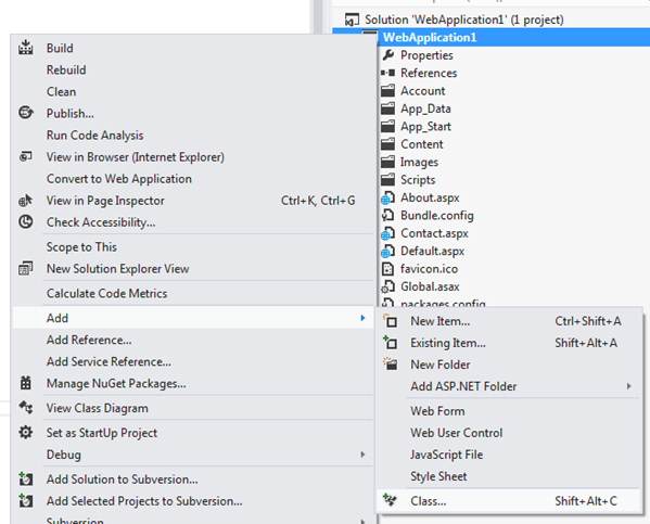 Let’s keep things simple by creating a brand new Web Application. In Visual Studio 2012, select File | New | Project. Then select an ASP.NET Web Forms Application.